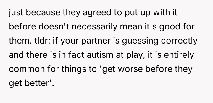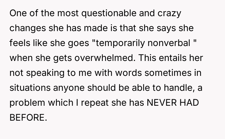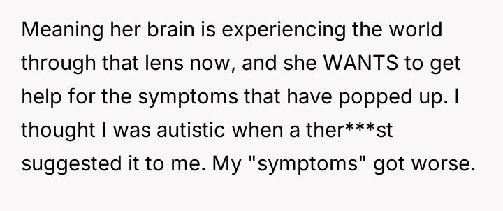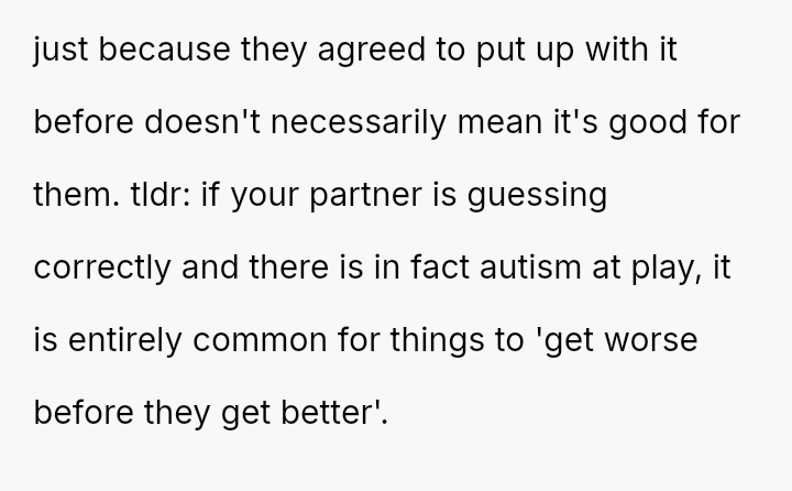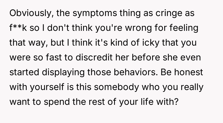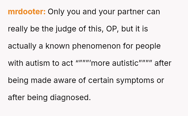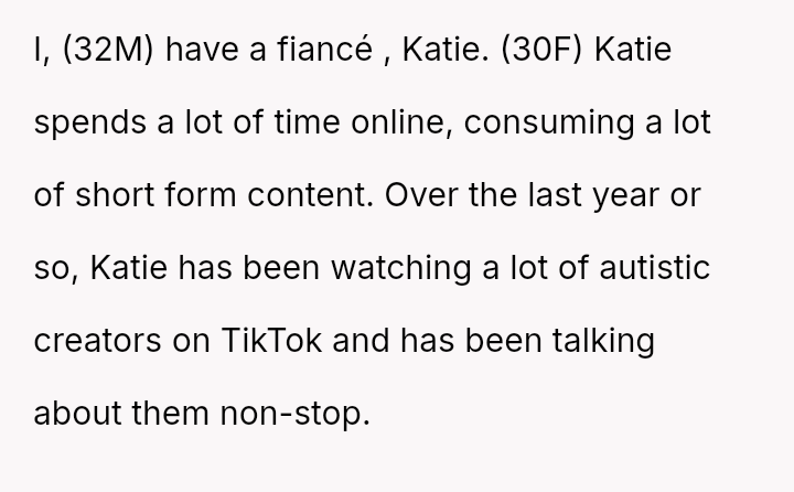 The original poster (OP) is experiencing significant frustration and conflict due to his fiancé's sudden adoption of behaviors he attributes to newly found online content about autism.