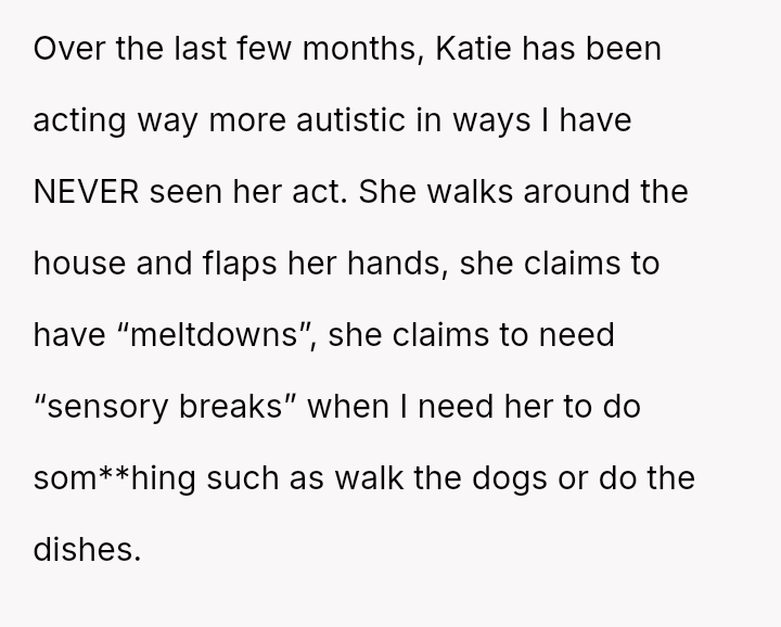 Caught between love and doubt, he wrestles with the fragile reality that Katie’s claim to autism might be more than a pa*sing phase—it might be a profound shift in who she is.