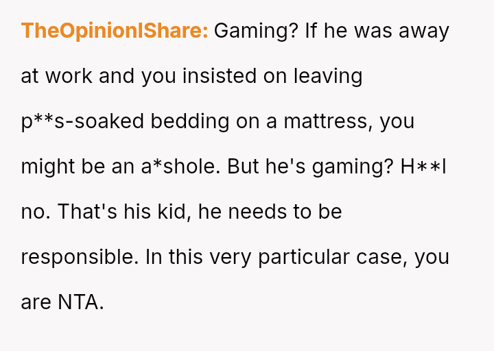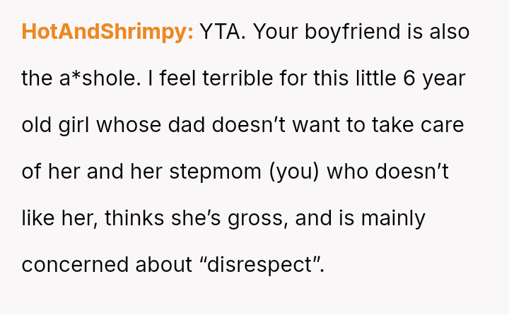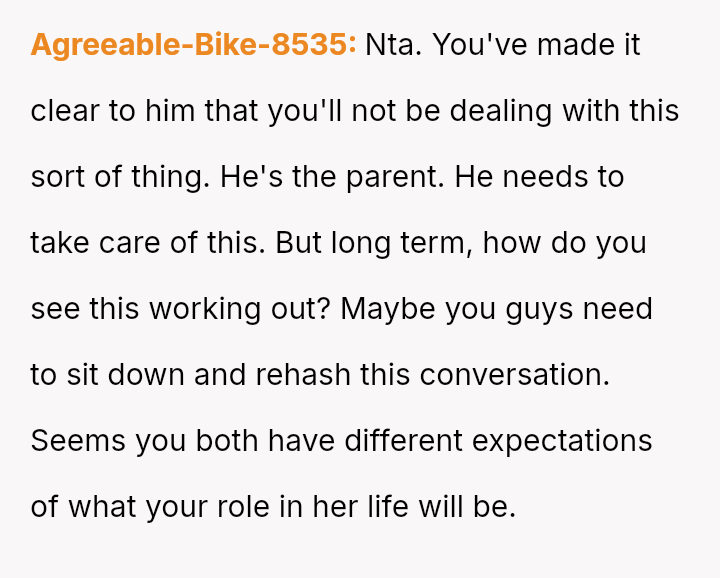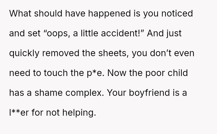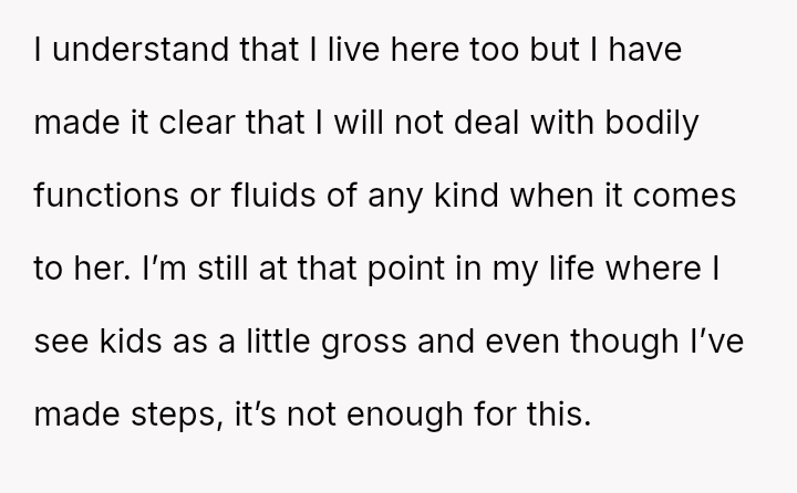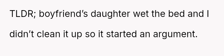 The original poster (OP) is in conflict because they refused to clean up their boyfriend's daughter's soiled bedding, citing a pre-es**blished boundary regarding bodily fluids, which directly clashed with the boyfriend's expectation that the OP handle the task while he was occupied.