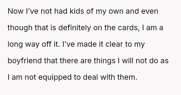 Is the OP at fault for adhering strictly to their personal boundary regarding cleaning bodily fluids when faced with an urgent situation involving their partner's child, or was the boyfriend justified in demanding a*sistance in managing a necessary household task?