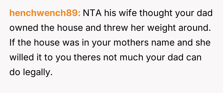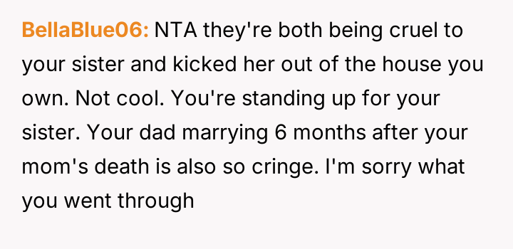 AITA for kicking out my dad and his pr****nt wife out of the home I legally own after they sent my depressed sister to live with our aunt?
