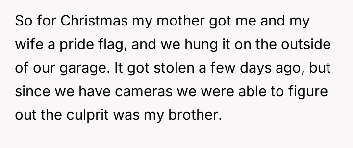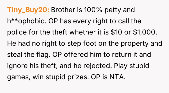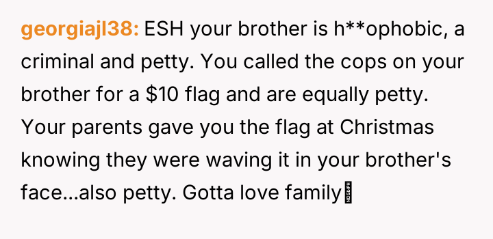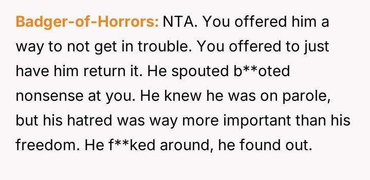 Given the brother's history of hostility, refusal to return stolen property, and use of hate sp*ech, was the OP justified in involving law enforcement, particularly given the brother's probation status, or should the OP have absorbed the theft and slurs to avoid jeopardizing the brother's freedom over a small material item?
