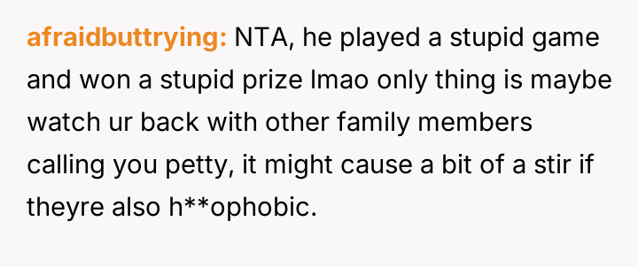 The original poster (OP) is facing a direct conflict between their need for safety, respect, and acceptance, and their brother's ongoing, hostile behavior rooted in prejudice.