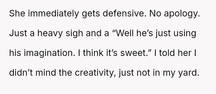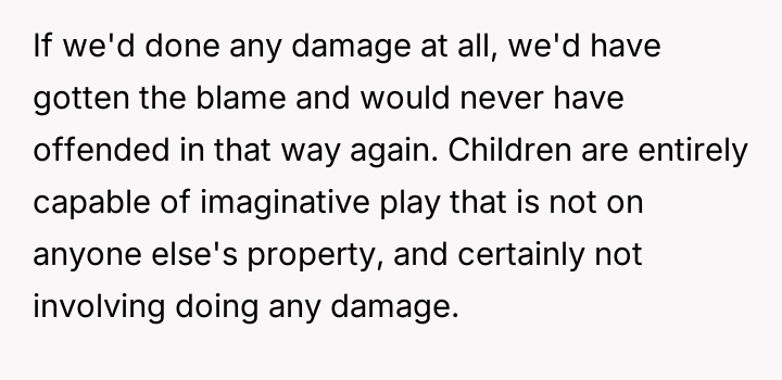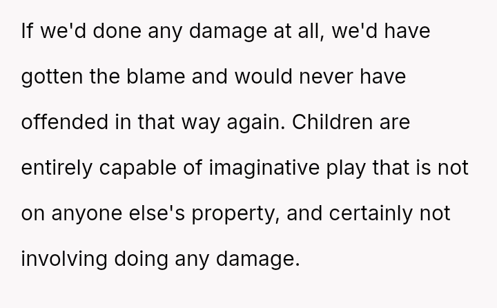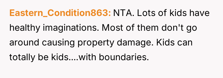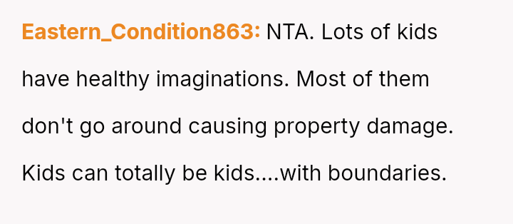 Is the OP justified in enforcing the boundary against property damage, even when the justification offered is a child's imaginative play, or did the mother's reaction—accusing the OP of crushing imagination and safety—place an unfair social burden on the neighbor?