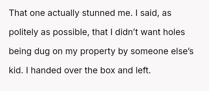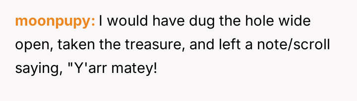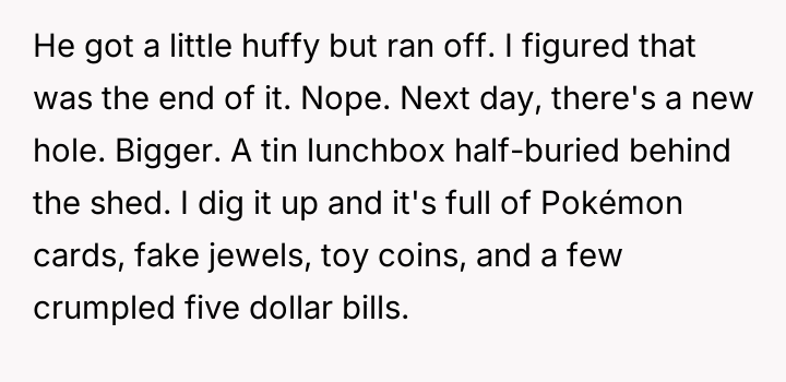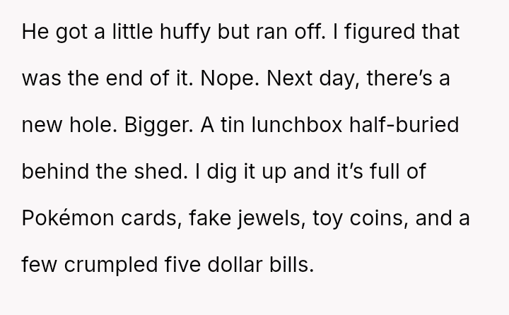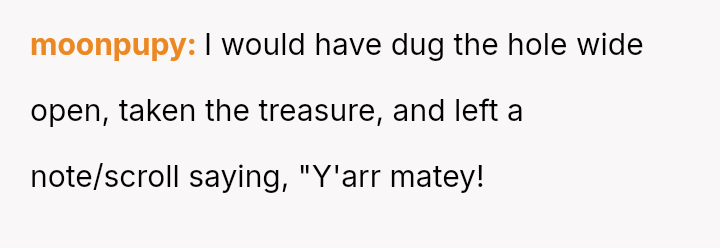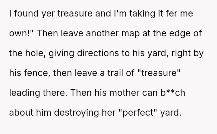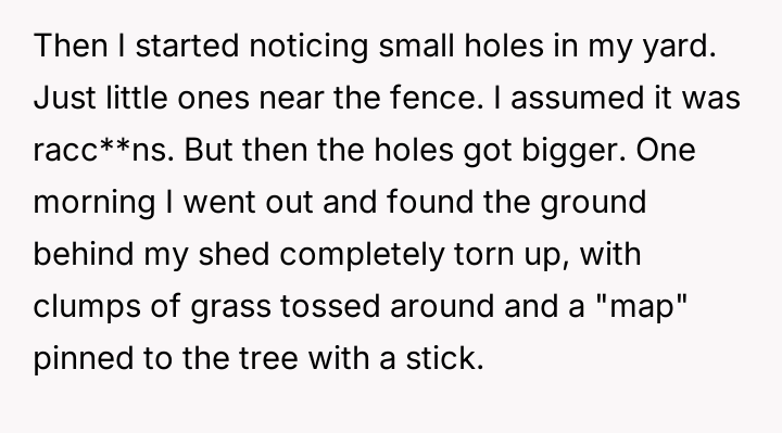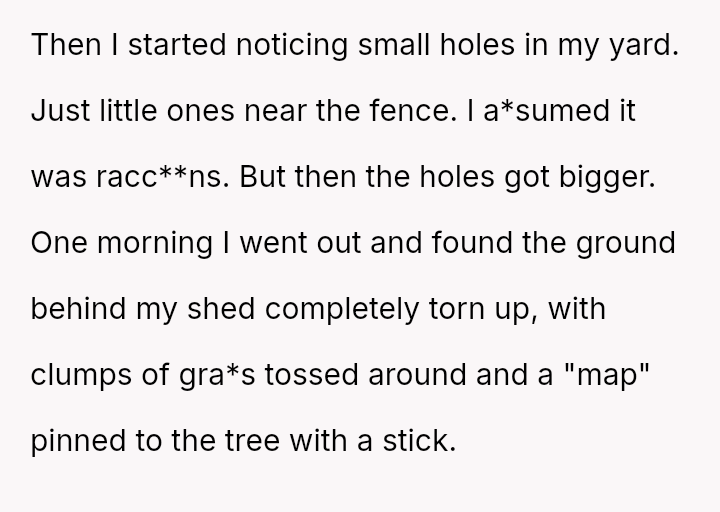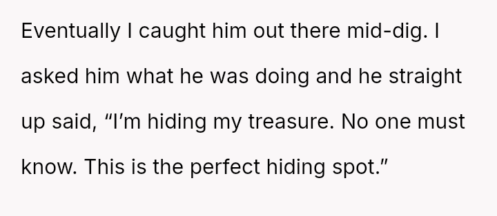 What began as innocent play soon left its mark on the landscape—holes dug with earnest determination and a mysterious map nailed to a tree.