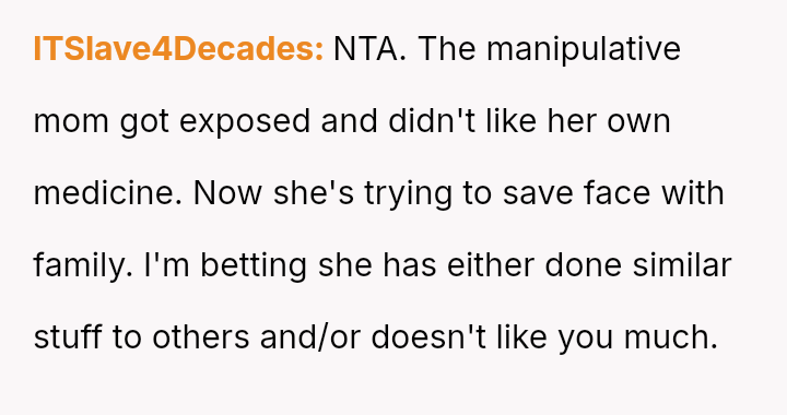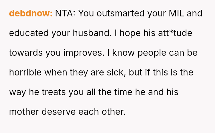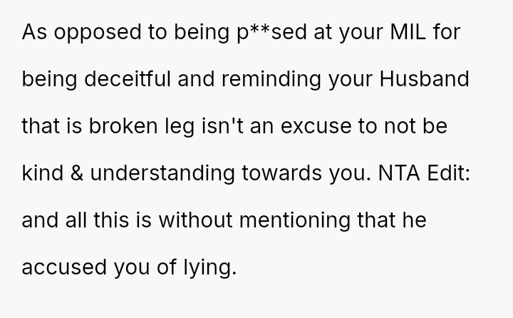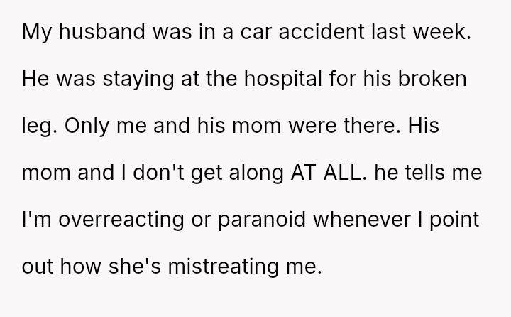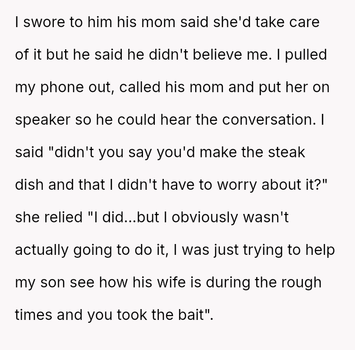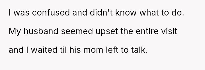 The original poster (OP) found herself in a difficult situation, caught between her husband's specific request, her mother-in-law's manipulative actions, and her husband's initial disbelief.