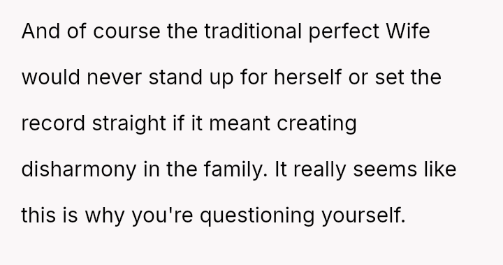 Or should she have maintained silence to avoid further confrontation, trusting that her husband would eventually see the manipulation?