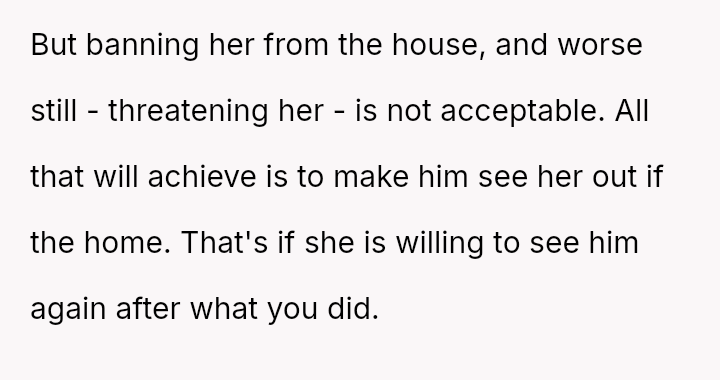His reaction involved a strict ultimatum followed by an aggressive confrontation when the boundary was crossed, leading to significant emotional distress for the girlfriend and subsequent intervention from extended family who believe the father is being overly harsh.