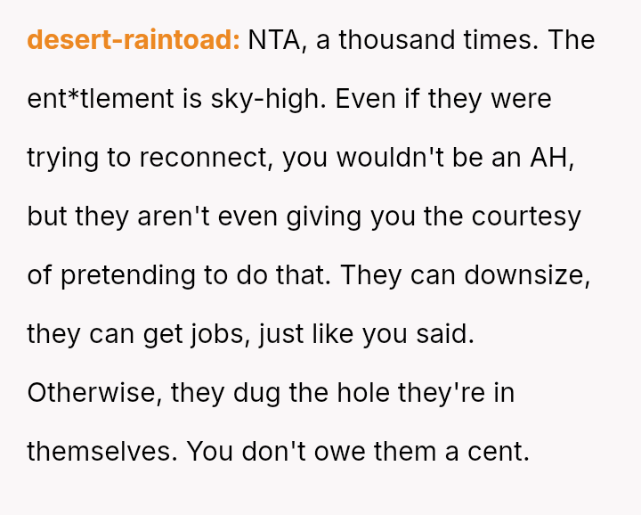 Given the history of abandonment and the current aggressive outreach by the entire family unit, the core question remains: Does a biological relationship automatically mandate financial rescue, especially when the family unit provided no support during the OP's formative years, or does the OP have the absolute right to prioritize their own es**blished security and well-being without facing accusations of being an 'a*shole'?