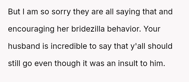 The original poster (OP) is facing a significant conflict between defending her husband against perceived discrimination and maintaining familial peace, especially regarding the wedding attendance.