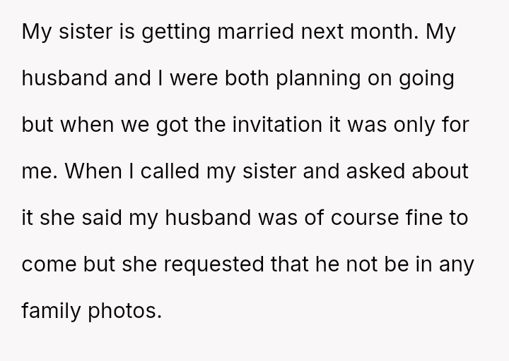 She stood frozen, clutching the wedding invitation that excluded her husband, the man she had loved and supported for eight years. Her sister's request to keep him out of family photos, simply because he was different, cut deeper than any words could.