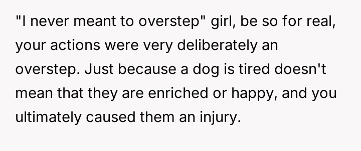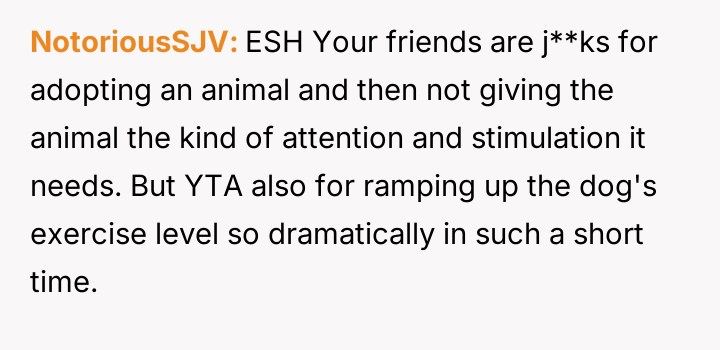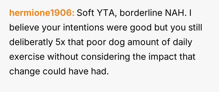 The original poster (OP) acted out of genuine concern for the well-being of a rescue dog, providing increased exercise that seemed to benefit the animal.