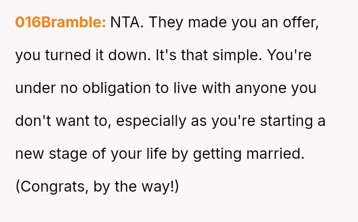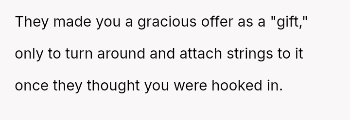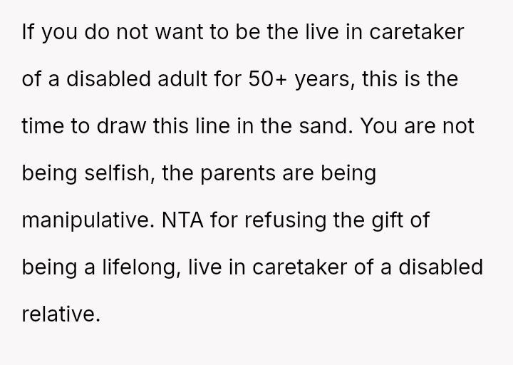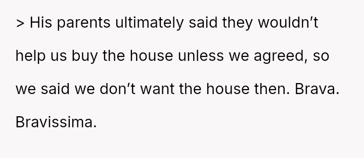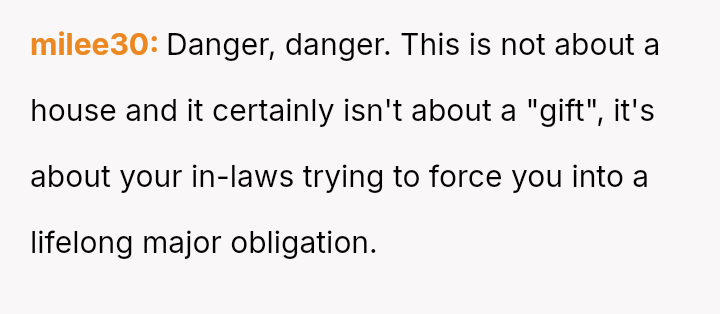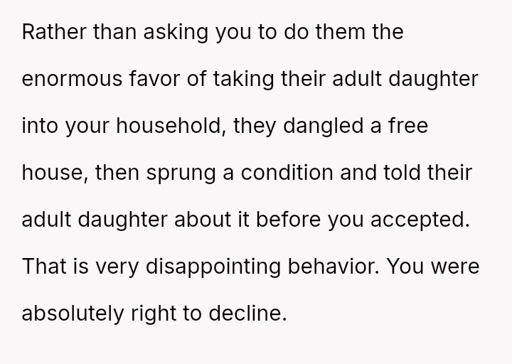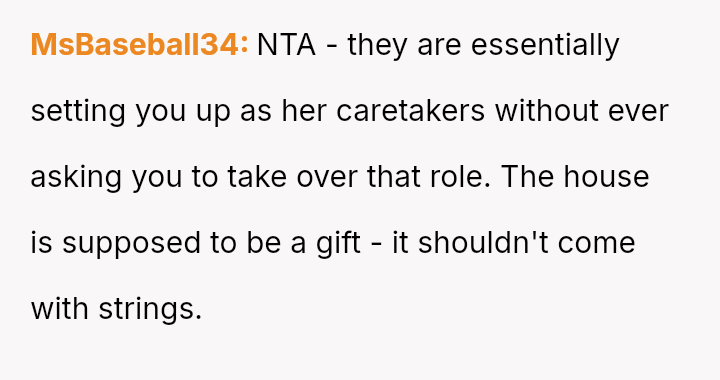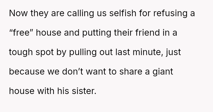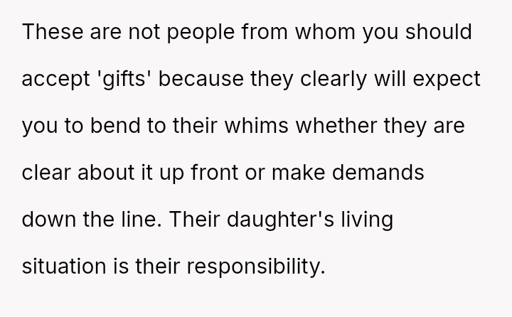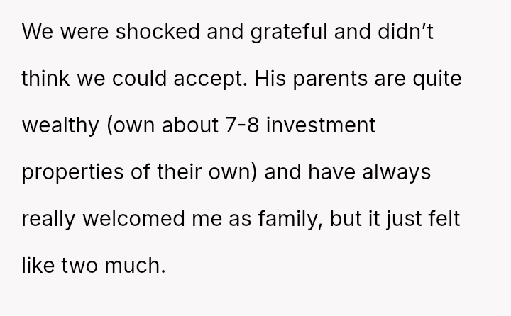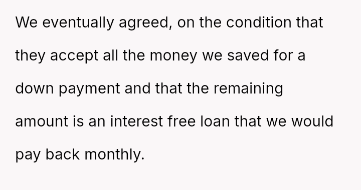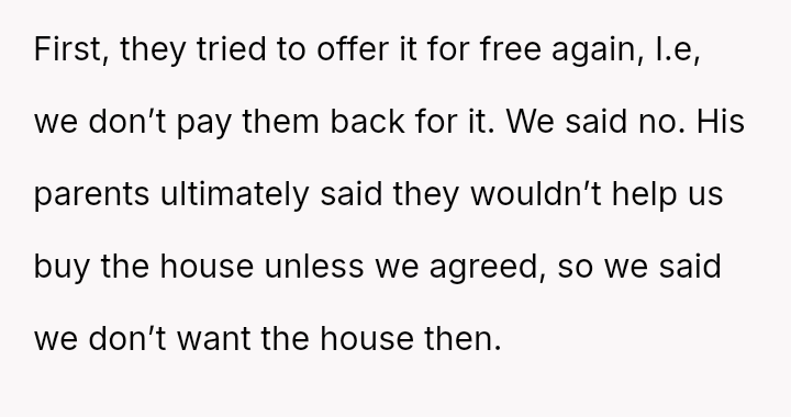 When the couple refused the imposed condition, the parents rescinded their offer, labeling the couple selfish for rejecting a substantial gift.