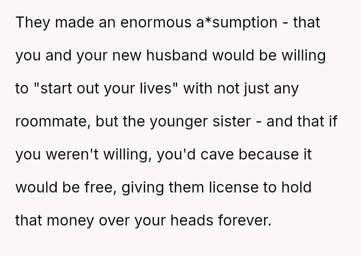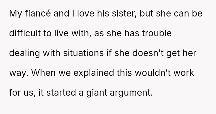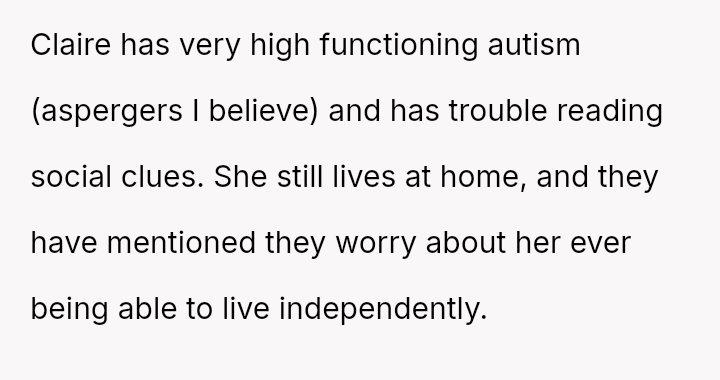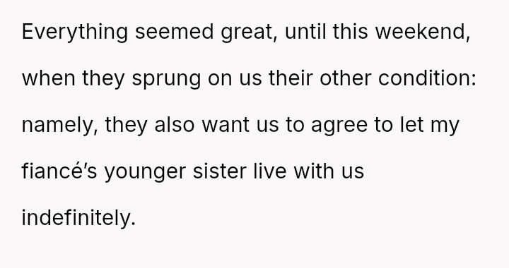 Their initial acceptance, contingent on repayment terms, was complicated when the parents introduced a non-negotiable condition: allowing the fiancé's sister, Claire, to live with them indefinitely.