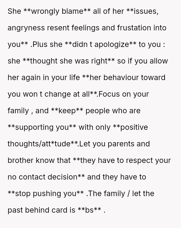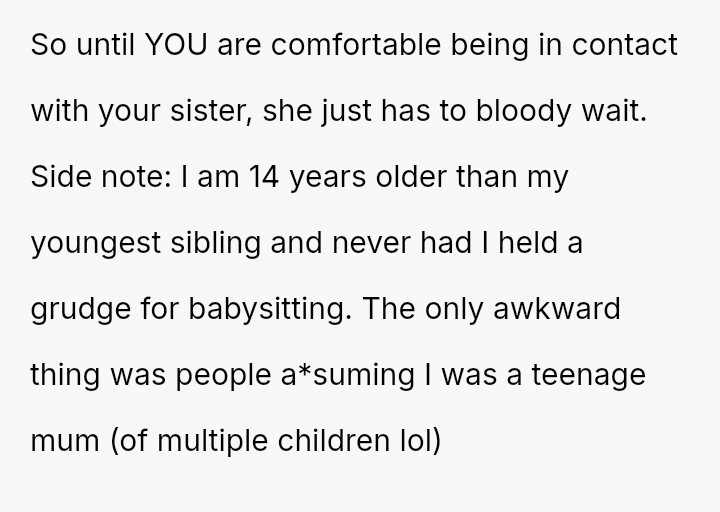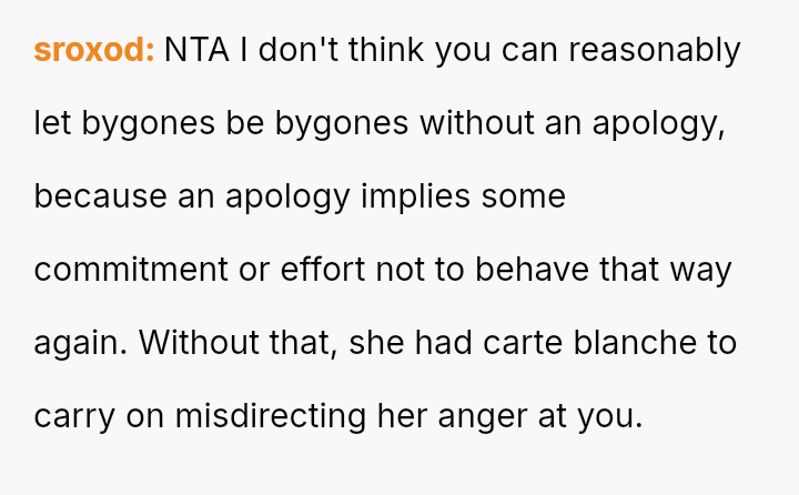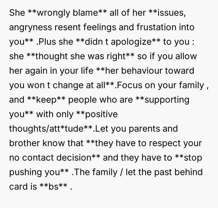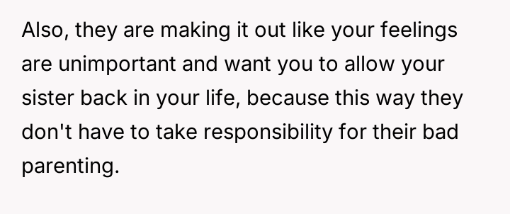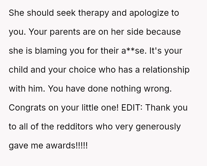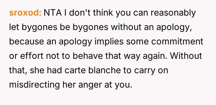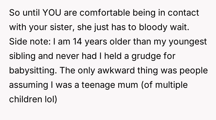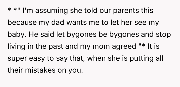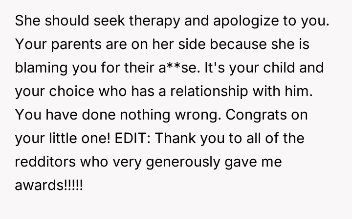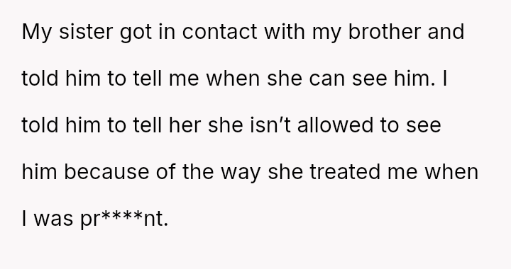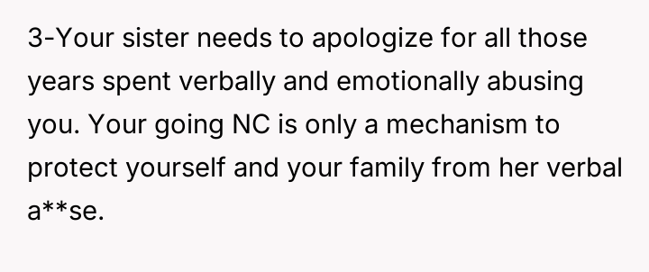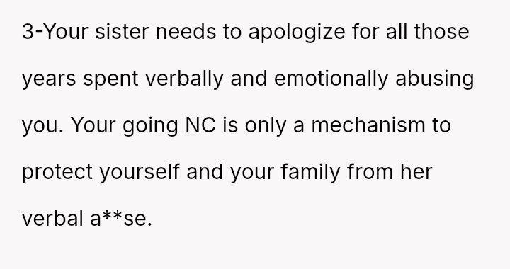 Given the sister's refusal to acknowledge the harm caused by her past comments, should the OP prioritize her healing and the protection of her child by maintaining the current no-contact boundary, or is the demand to allow visitation a reasonable familial expectation that outweighs the need to enforce accountability for past emotional a**se?