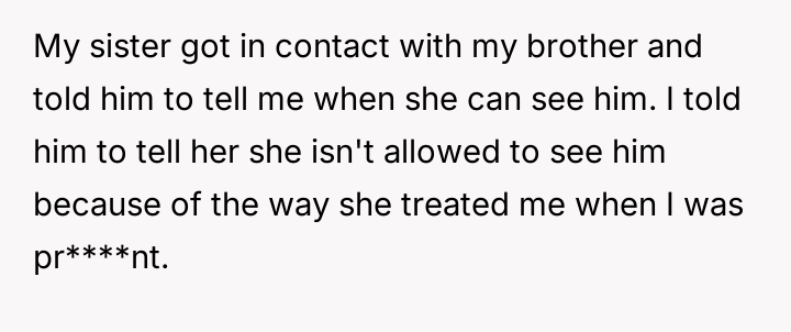 AITA for not allowing my sister to see my son because of som**hing she said months ago?
