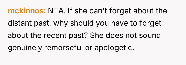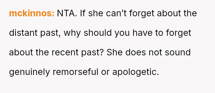While the OP's family advocates for forgiveness and moving on, the OP maintains firm boundaries based on past mistreatment, supported by her fiancé.