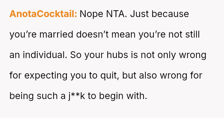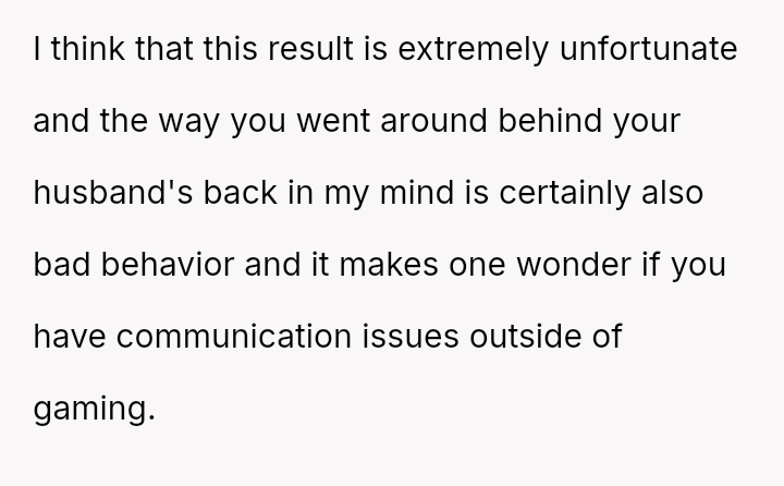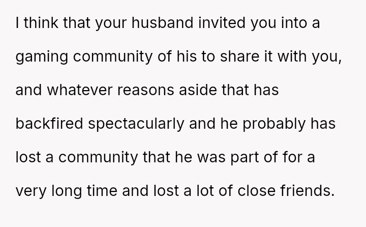 Was the original poster justified in refusing to quit the game to support her husband's ultimatum, or should she have sacrificed her own enjoyment to maintain harmony with his demands?