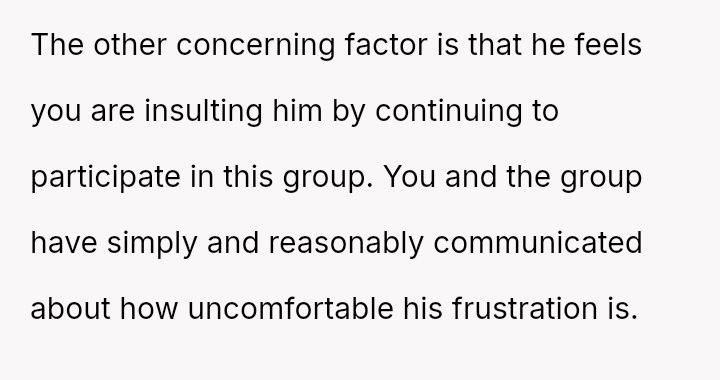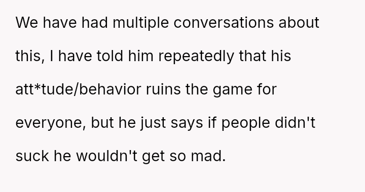 This scenario forces a decision between respecting personal boundaries and maintaining a shared activity in the face of unmanaged anger.