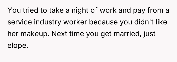 Was the bride justified in demanding the removal of a staff member whose appearance conflicted with her aesthetic vision for her wedding, or did this action const*tute an overreaction that unfairly impacted a young employee?