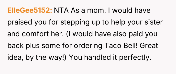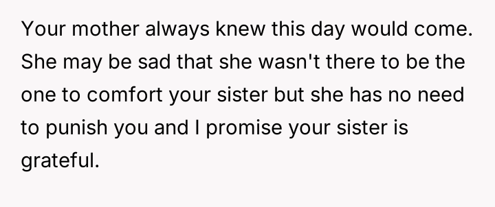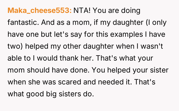 Was the OP right to act immediately to comfort their sister, or should they have deferred all action until the mother returned?