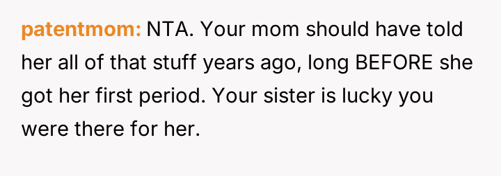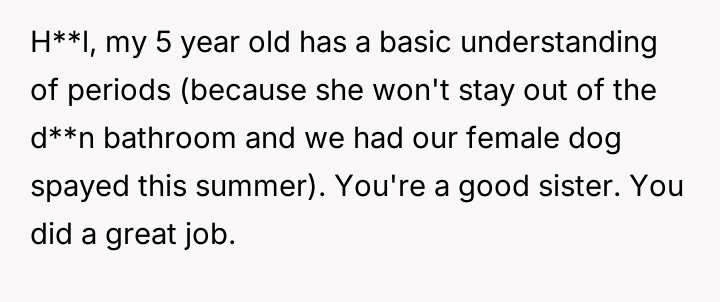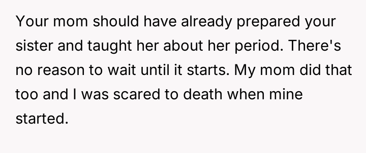 AITAH for stepping up when my little sister got her period.