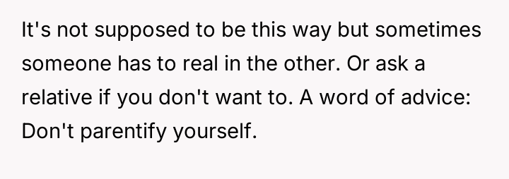 The core question for consideration is where the line should be drawn between a sibling offering essential, immediate support versus the designated parent maintaining exclusive control over sensitive instruction, especially when one parent is absent or heavily occupied?