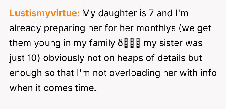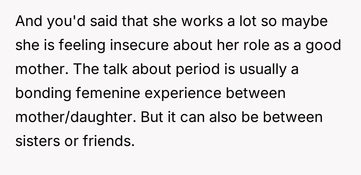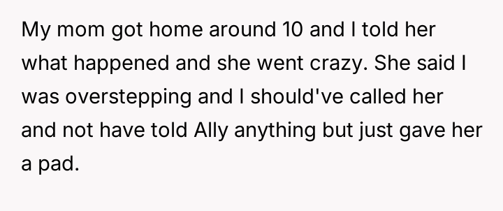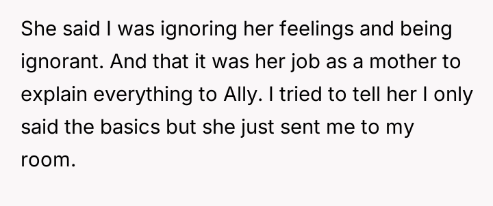 The central conflict arises because the mother perceived this action not as supportive sibling care, but as an overstep of parental authority and boundary v***ation regarding her role as the primary educator on sensitive topics.