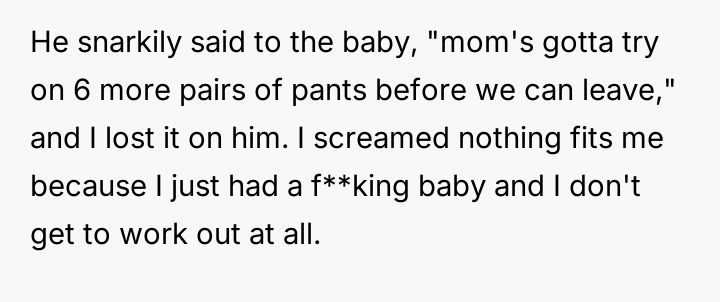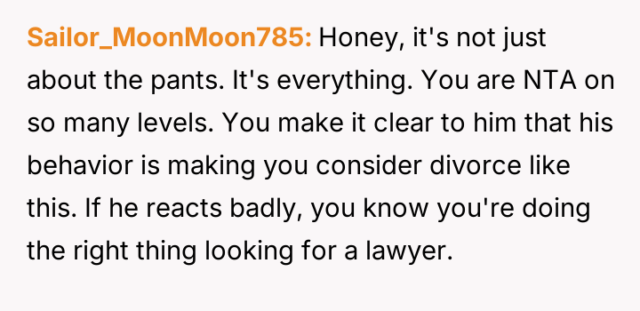 AITH if I told my husband I wanted a divorce after he made fun of how many pants I tried on?