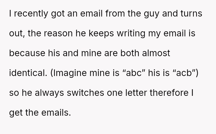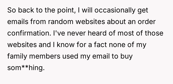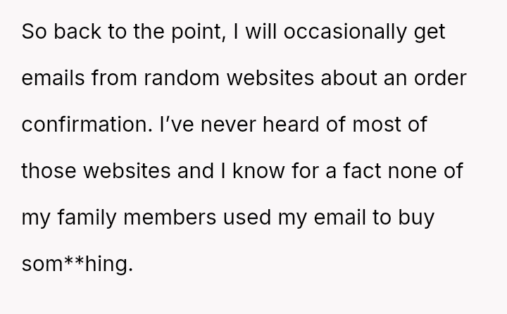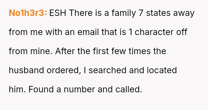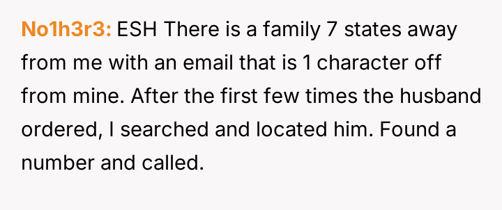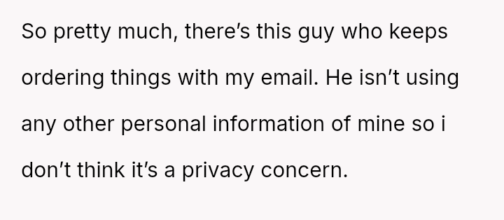 The original poster (OP) is facing repeated, unwanted order confirmations due to a minor email address mix-up with another individual.