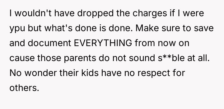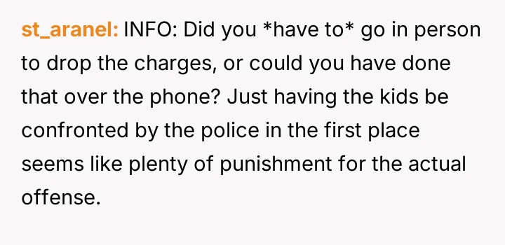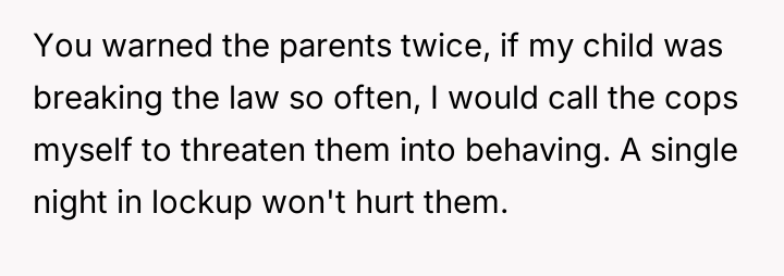 Alternatively, should the OP have pursued less punitive measures, such as involving parental mediation or seeking a civil solution first, despite the prior failure of verbal warnings?