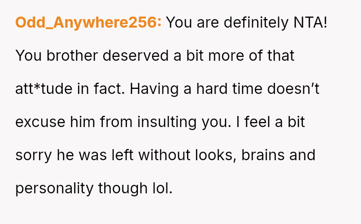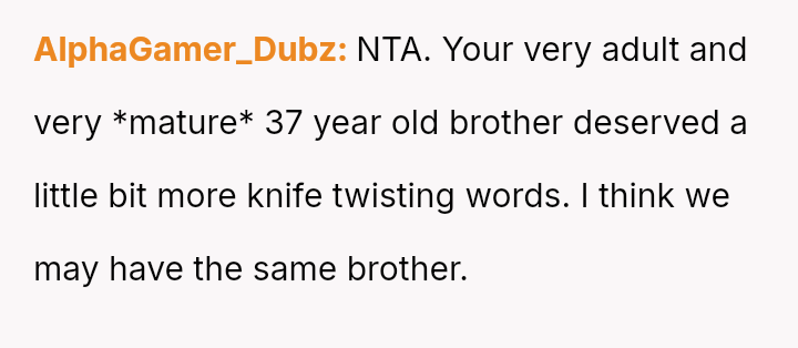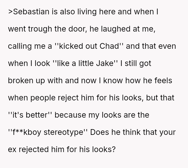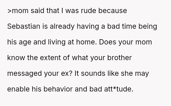 The original poster (OP) is clearly distressed by the toxic dynamic with his older brother, Sebastian, especially after the recent incident involving his ex-partner.