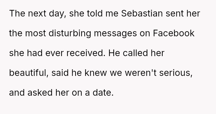 Given the history of disrespect and the recent escalation involving the ex-partner, is the OP's decision to cut off contact with Sebastian and distance himself from the family's environment the necessary action for self-preservation, or does it sacrifice familial connection pr****urely for a relationship that might still be salvageable through structured intervention?