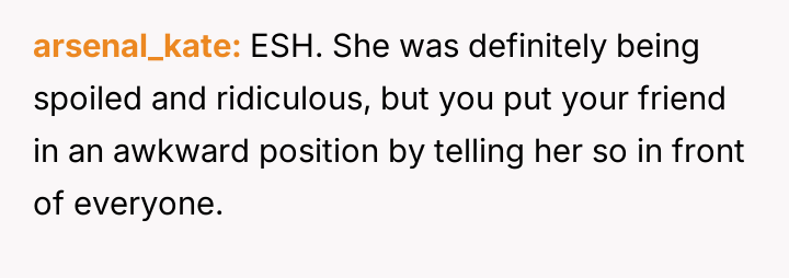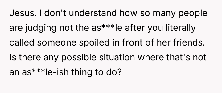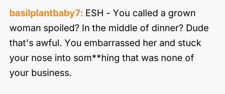 The OP reacted strongly by directly calling the girlfriend spoiled, creating immediate tension at the dinner.