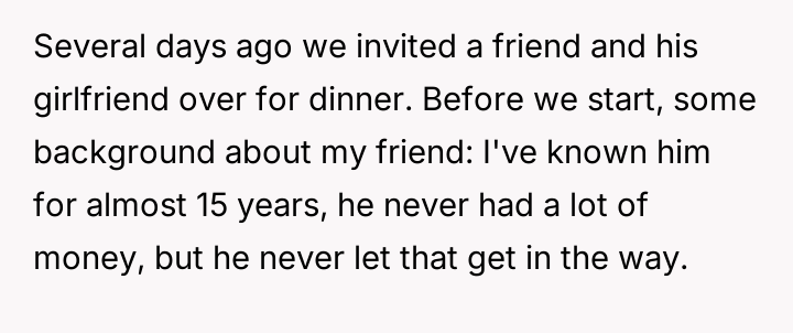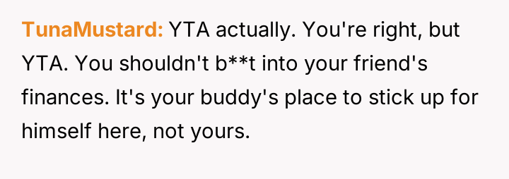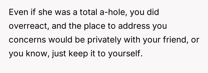 Given the OP's direct verbal confrontation versus the girlfriend's materialistic demands, the central question remains whether confronting someone with harsh personal criticism is justifiable when defending a friend's financial s**bility, or if this action unfairly escalated a private financial disagreement into a public personal attack?