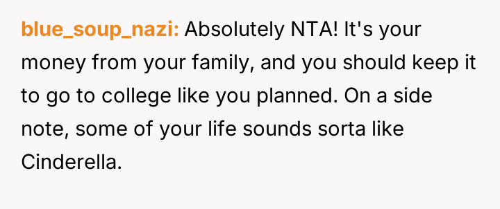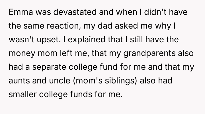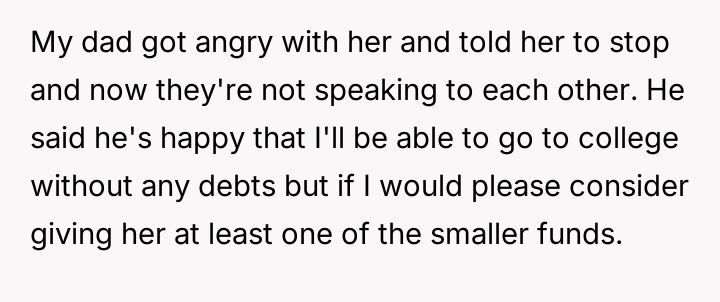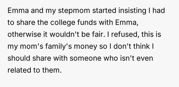 AITA for refusing to split my college fund(s) with my stepsister?