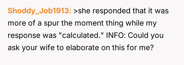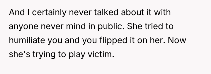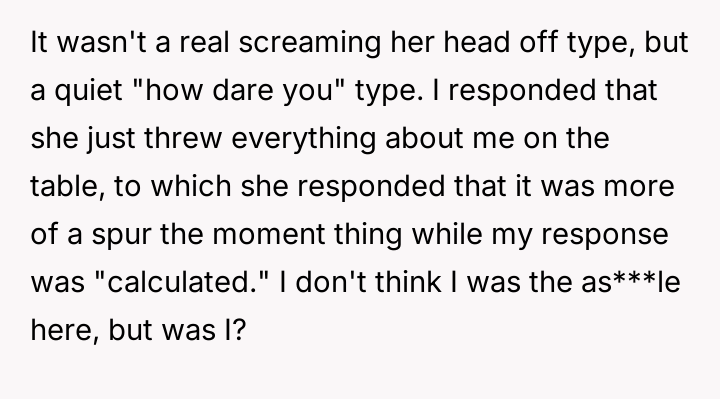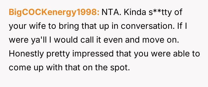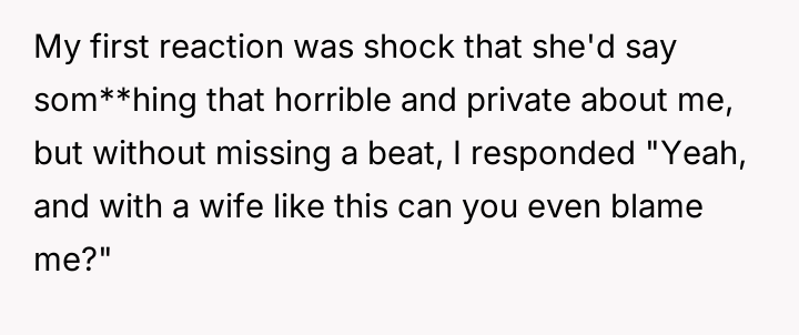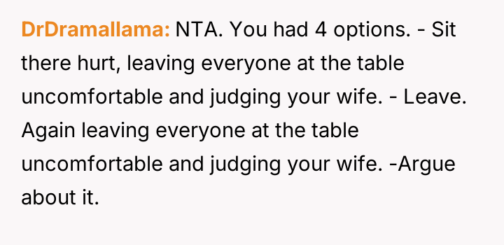 Given that both partners made highly sensitive personal attacks in a public setting, is the wife's reaction to the OP's retort justified, or did the OP's defense rightly mirror the severity of the initial public humiliation inflicted upon him?