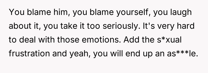 His immediate, sharp retort, while intended to defend himself in the moment, has escalated the conflict, leading to a clear divide in how they perceive the intent and impact of their respective actions.
