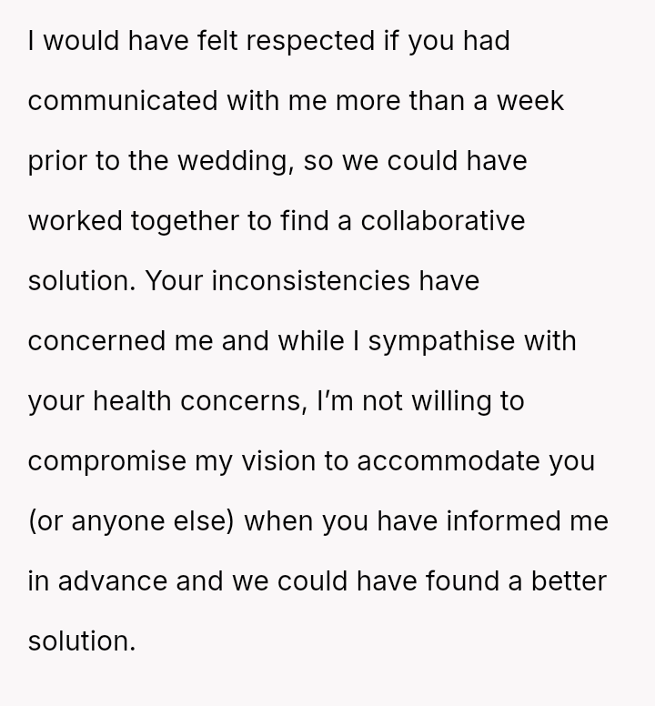 The dream wedding became a painful reminder of how quickly support can turn to disappointment when expectations overshadow empathy.