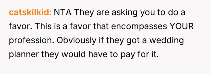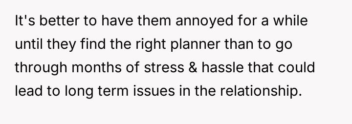 This refusal has caused significant anger, as the OP feels justified in protecting their time and professional standards, while the couple views this as an unfair rejection and lack of support.