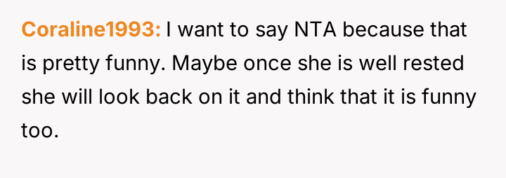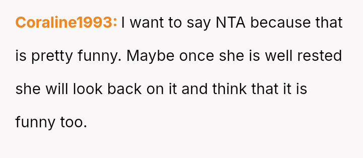The central issue revolves around the OP's perception of the comment as harmless humor versus the sister's current state of exhaustion and sensitivity following childbirth, which made the joke feel insensitive or offensive.