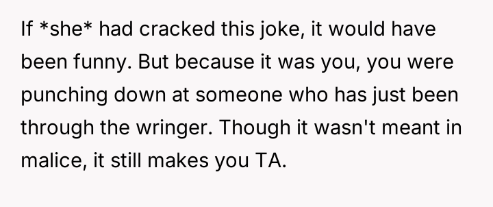 In that moment, a simple comment became a painful reminder of the delicate balance between empathy and misunderstanding.
