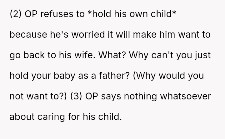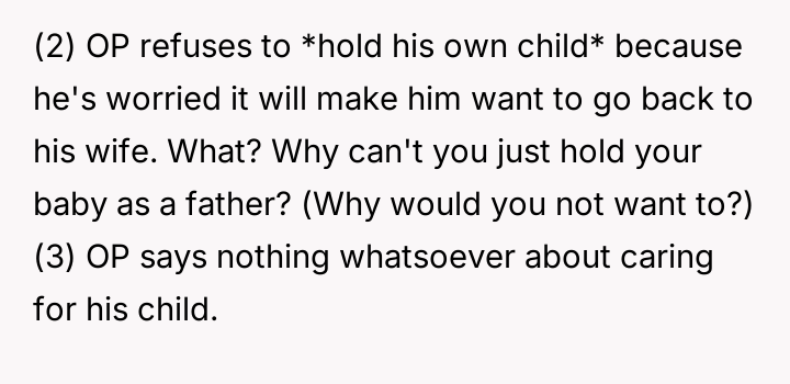 The original poster (OP) is experiencing severe emotional distress, feeling that his life has collapsed due to a major conflict with his wife immediately following the birth of their child.