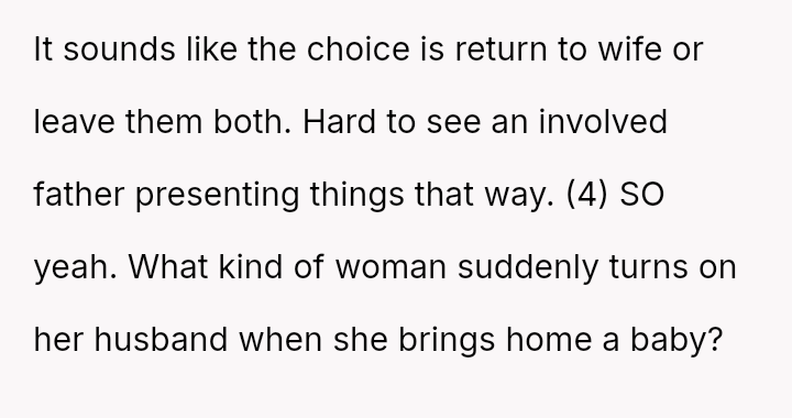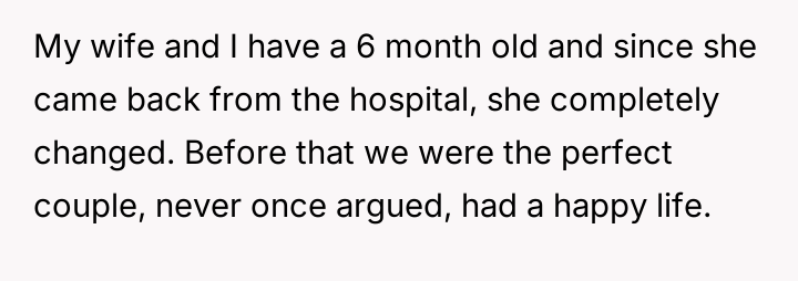 Once a picture of perfect harmony, their life shattered the moment their child was born. The wife, once loving and kind, transformed into a stranger whose silent hatred cut deeper than any words could.