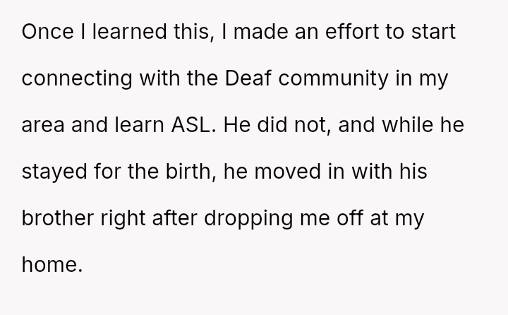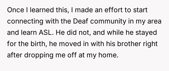 Determined to bridge the silence, she immersed herself in the Deaf community and learned ASL, ready to give her child a world of love and understanding.