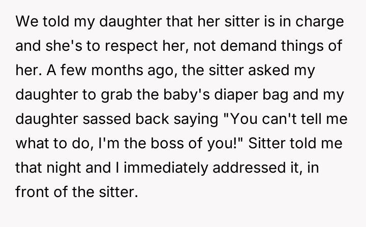 ‘AITA for telling my daughter it's her fault that her babysitter quit?’