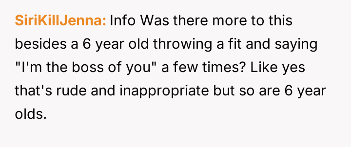 The core question remains whether the disciplinary actions taken against a six-year-old, who fundamentally misunderstood the nature of employment and respect, were appropriate, or if the severity of the consequence (losing activities) unduly punished the child for a behavior rooted in miscommunication and exposure to poor examples.