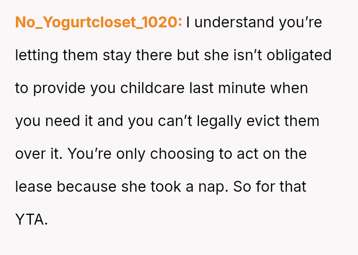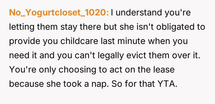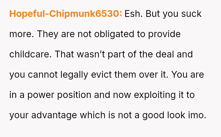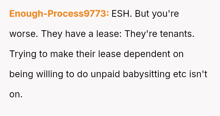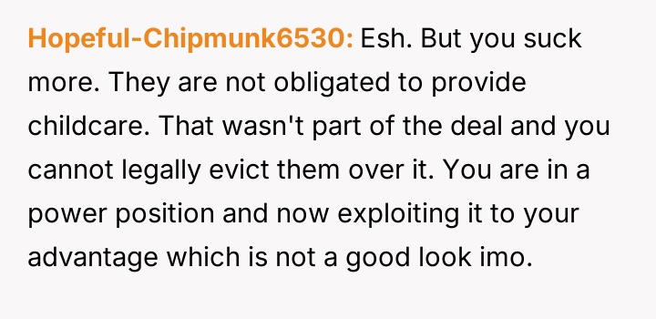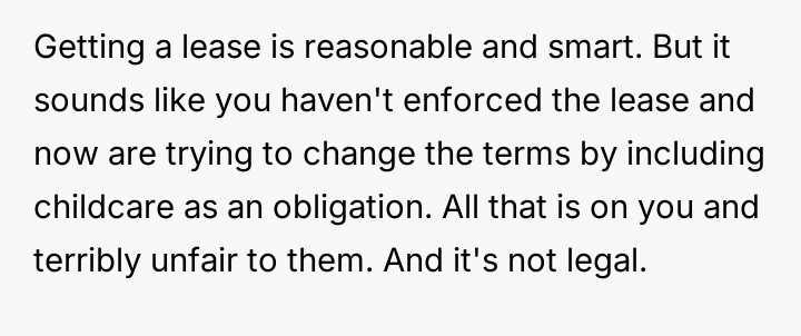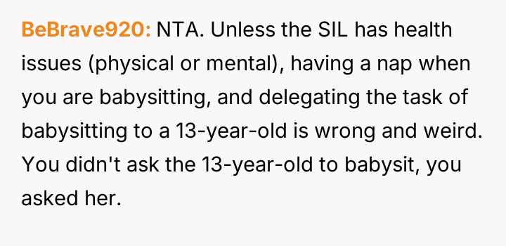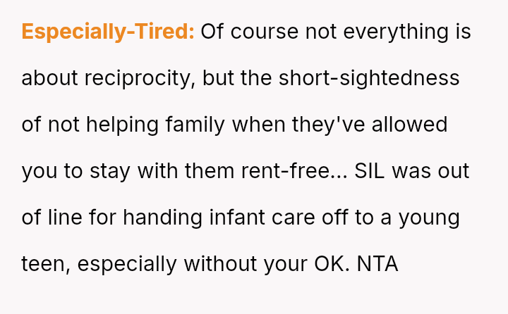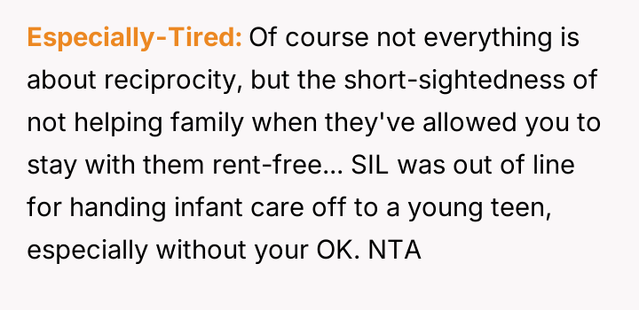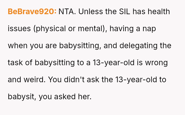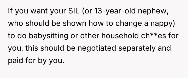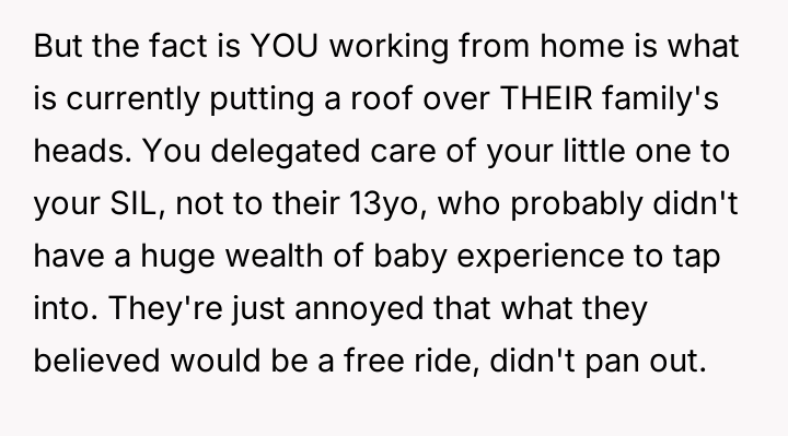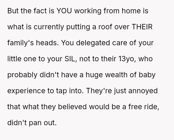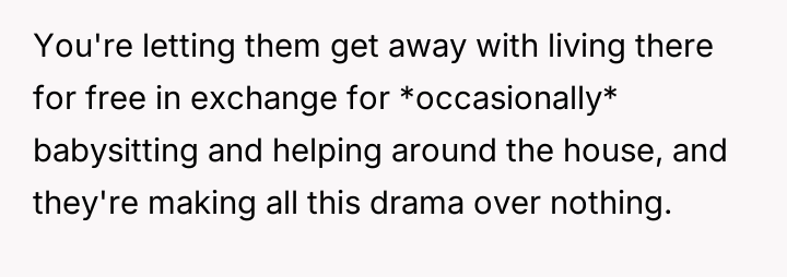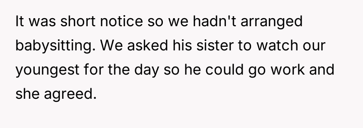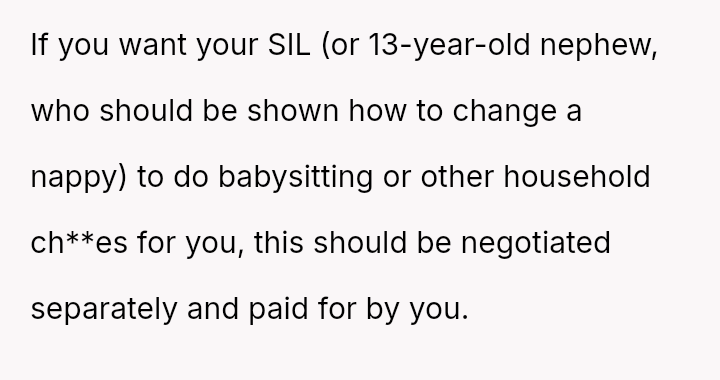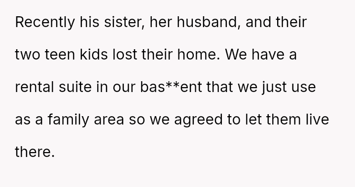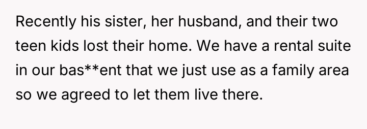 The original poster (OP) and her husband es**blished clear boundaries regarding the housing arrangement, which the sister ultimately v***ated by delegating childcare to a minor.