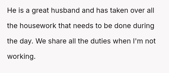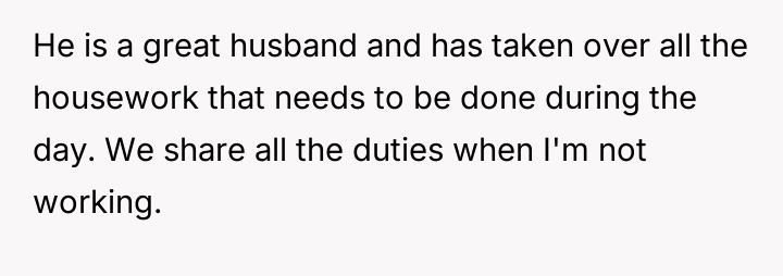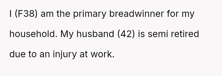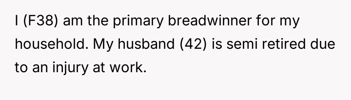 In the quiet turmoil of their shared lives, a woman balances the weight of being the primary breadwinner while her husband, semi-retired from injury, tends to their home with unwavering dedication.