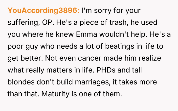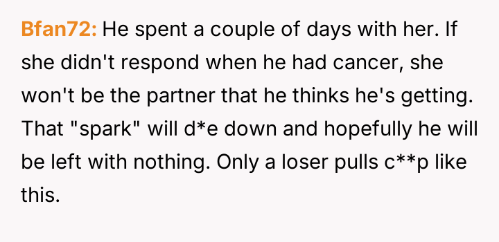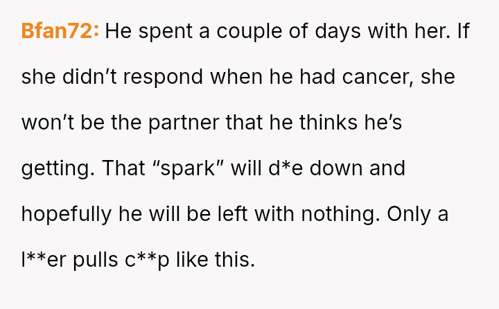 The central conflict lies between the OP's dedication to the relationship, which included supporting him through difficult times like cancer treatment, and her husband's sudden prioritization of a rediscovered emotional connection with a past figure.